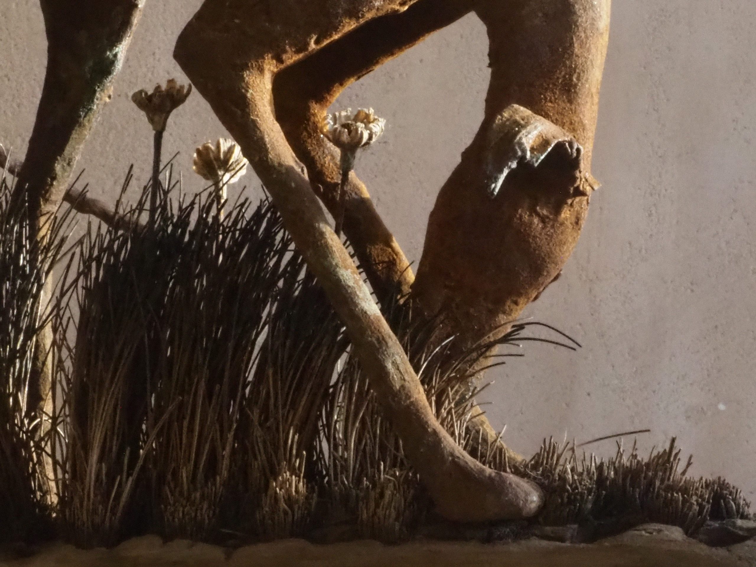 Mixed media maquette made from paper, wire and clay on wooden base