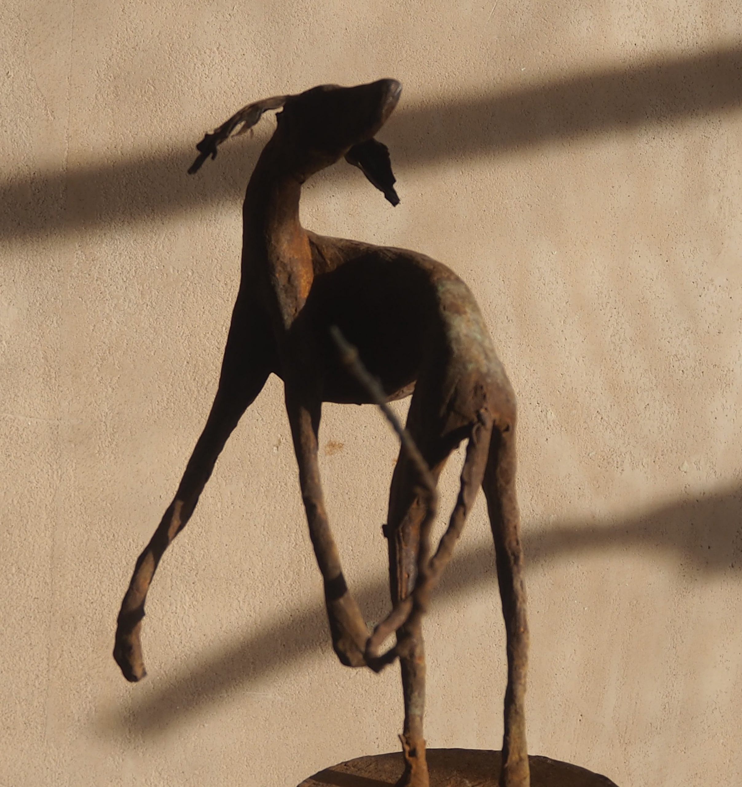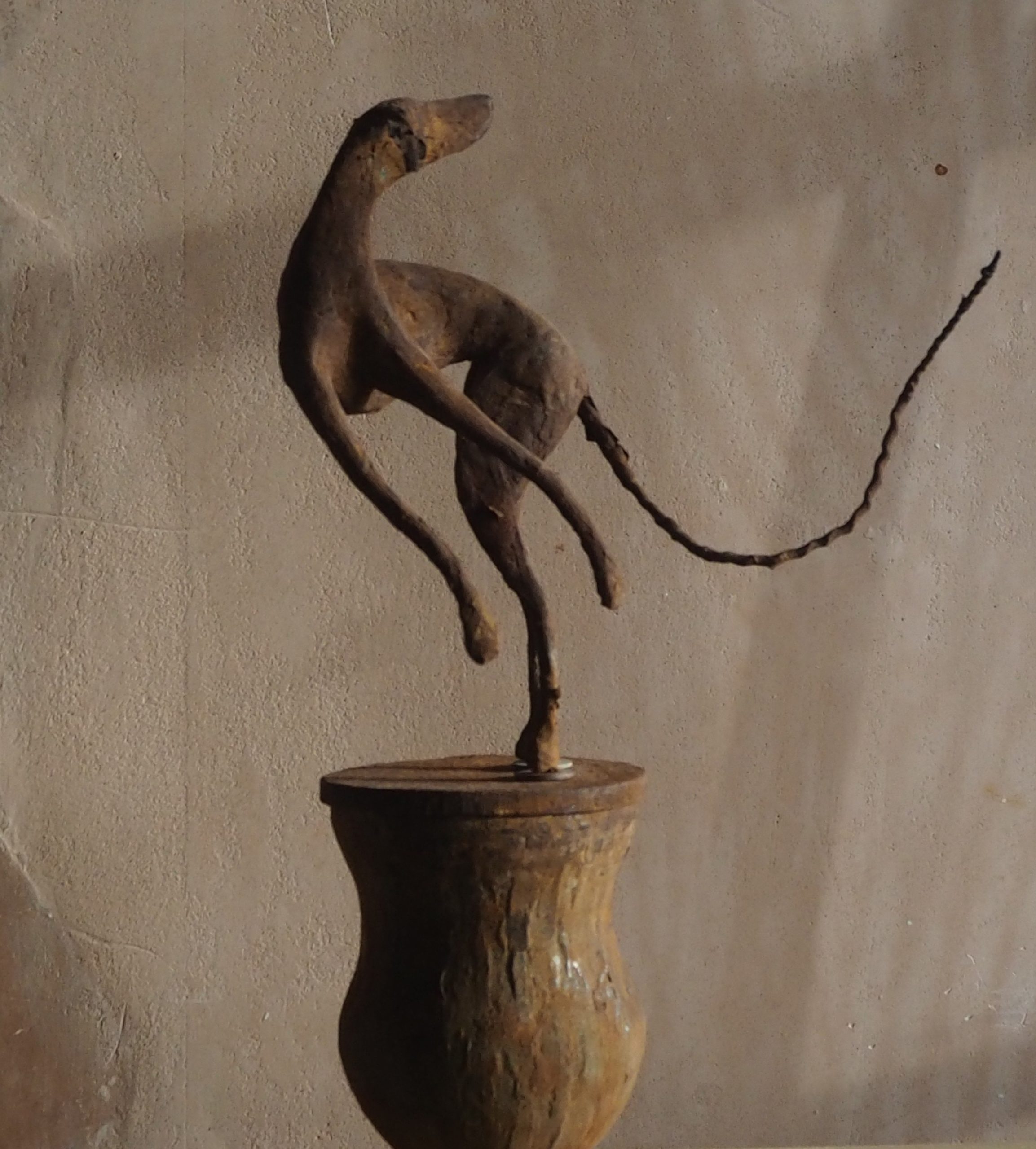 Mixed media maquette made from wire, paper and clay on papier mache base